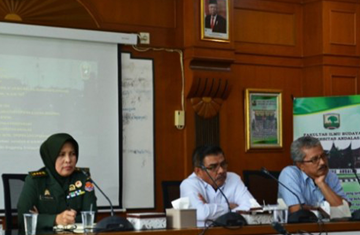 Beberapa dosen di prodi sejarah Universitas Andalas juga menghasilkan karya-karya yang berkaitan dengan persoalan-persoalan PRRI dari sudut pandang yang beragam. Saya kira titik temunya bisa Kita peroleh melalui diskusi lanjutan nantinya. Kami berharap acara diskusi antara akademisi dengan kawan-kawan dari pihak Disjarah Angkatan Darat ini sering Kita laksanakan ke depannya,” jelas Prof. Herwandi, M.Hum. dalam kata sambutannya.
